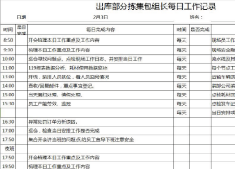 改善前:出庫(kù)部分揀集包組班組長(zhǎng)日常管理無(wú)標(biāo)準(zhǔn)化的管理規(guī)范,班組長(zhǎng)日常管理的關(guān)鍵管控點(diǎn)存在管控疏漏的情況,不利于班組成長(zhǎng)。
