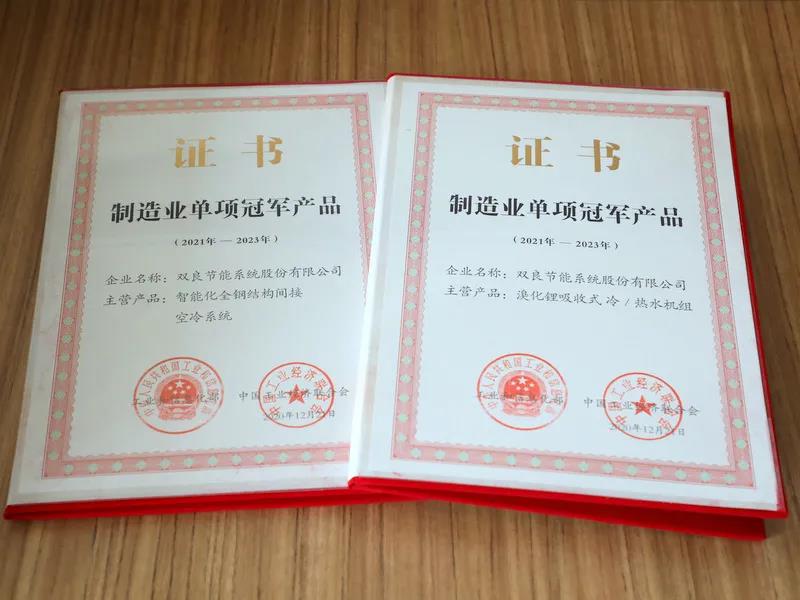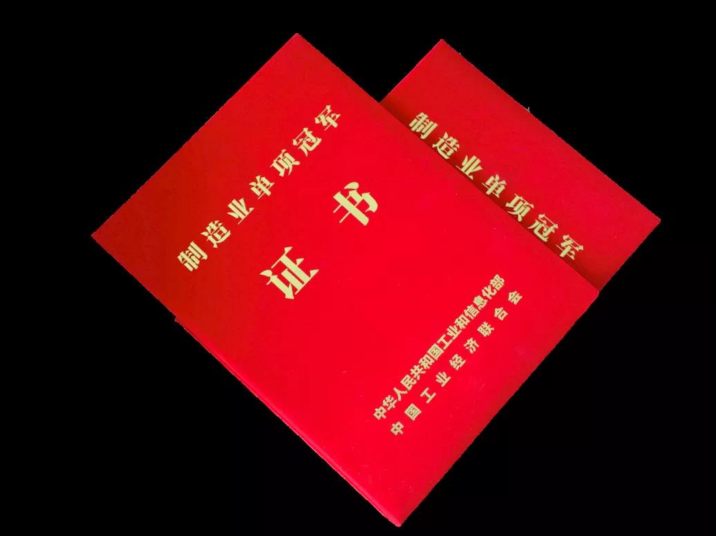兩本中國制造業(yè)單項(xiàng)冠軍產(chǎn)品證書