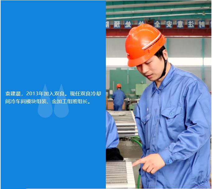 袁建晨,2013年加入雙良?,F(xiàn)任雙良冷卻間冷車(chē)間模塊組裝、金加工組班組長(zhǎng)。