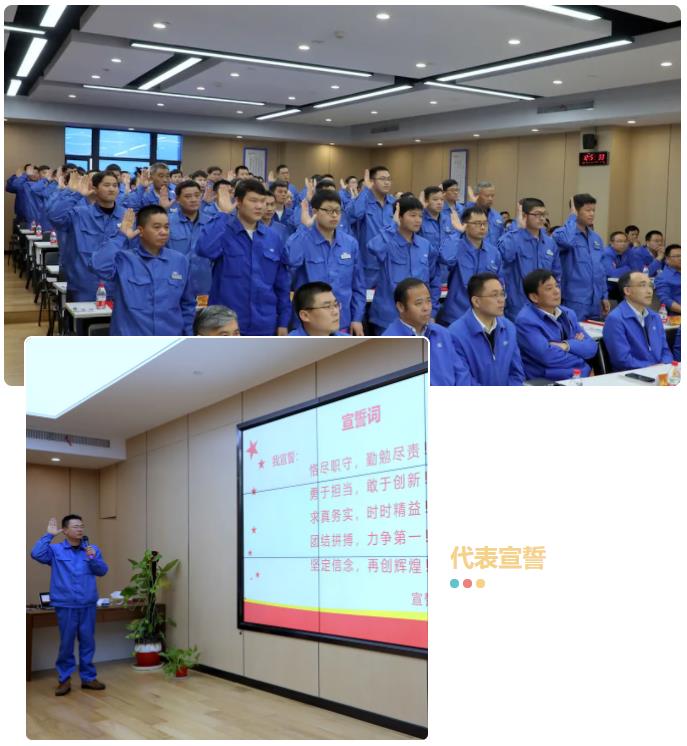 儀式上,雙良節(jié)能溴冷機(jī)事業(yè)部蒸吸筒體焊接組組長(zhǎng)馬立,帶領(lǐng)新聘班組長(zhǎng)宣誓。誓言錚錚,高亢嘹亮,現(xiàn)場(chǎng)對(duì)全體新聘班組長(zhǎng)肩負(fù)使命,為雙良發(fā)展努力奮斗奉獻(xiàn)的表達(dá)報(bào)以掌聲和敬意。