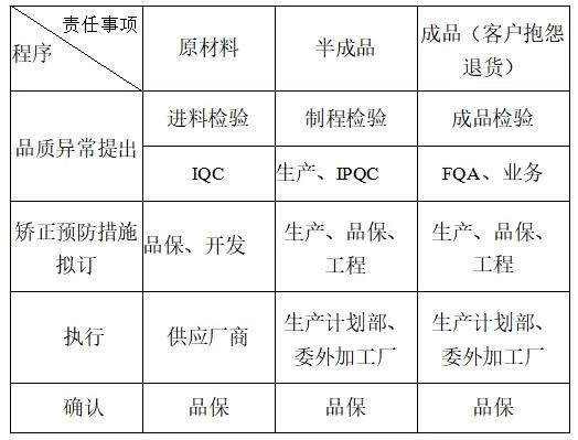 (二)由品保會同工程部、生產(chǎn)部分析、判定發(fā)生原因,并確定責任歸屬,交責任單位立即擬訂矯正預防措施。