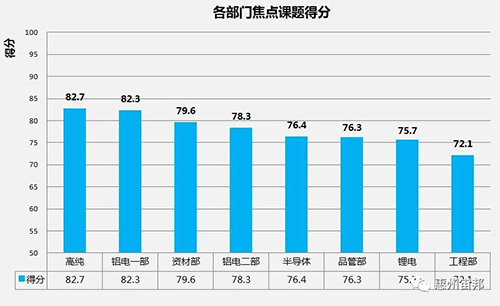 本次課題評(píng)比通過(guò)組長(zhǎng)現(xiàn)場(chǎng)演講,評(píng)委現(xiàn)場(chǎng)打分的方式進(jìn)行,評(píng)委組成有:周總、李總、秦總、孫總、楊總、各部門(mén)經(jīng)理、顧問(wèn)老師。經(jīng)過(guò)各課題組長(zhǎng)的演講,展示課題的開(kāi)展過(guò)程與成果,以及評(píng)委根據(jù)評(píng)分標(biāo)準(zhǔn)進(jìn)行評(píng)價(jià)打分,高純化學(xué)品部課題-《提高LT113干燥的合格率》獲得第一名,鋁電一部課題-《縮短LT65的干燥時(shí)間》獲得第二名,資材部課題-《提高銅蝕刻液噸桶清洗的一次合格率》獲得第三名。各部門(mén)課題得分如下: