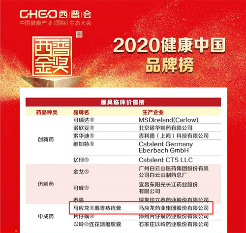會(huì)上,馬應(yīng)龍品牌及產(chǎn)品榮登“最具臨床價(jià)值榜”、“健康中國(guó)•品牌榜”、“2020中國(guó)藥品品牌榜•價(jià)值排行榜”、“2019-2020年度中國(guó)藥品零售企業(yè)綜合競(jìng)爭(zhēng)力排行榜”等四項(xiàng)榮譽(yù)榜單。