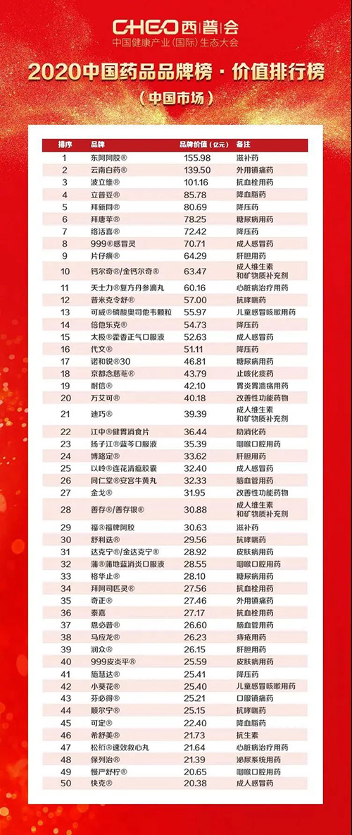 中國(guó)藥品品牌榜•價(jià)值排行榜