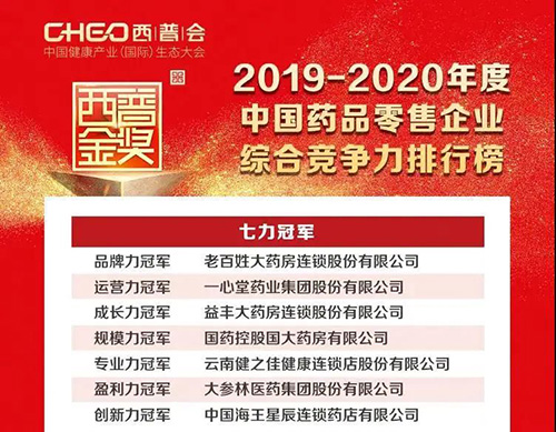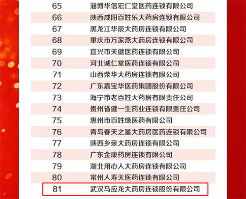 8月14日西普會(huì)上,“2019-2020年度中國(guó)藥品零售企業(yè)綜合競(jìng)爭(zhēng)力排行榜”隆重揭曉,武漢馬應(yīng)龍大藥房連鎖股份有限公司入選榜單。