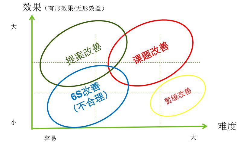精益生產(chǎn)導(dǎo)入初期先是針對6S難度小直接回報低的項目進行改善,然后擴展到數(shù)據(jù)分析后難度小回報大的提案進行改善。再之后,隨精益生產(chǎn)推進,日常生產(chǎn)中的疑難問題被識別出,為主要浪費,通過個人或單個部門難以解決;同時這些問題會分布在產(chǎn)品品質(zhì)、生產(chǎn)成本、產(chǎn)品交期以及6s的疑難問題(半制品三定關(guān)聯(lián)到布局、JIT、自働化),都為等待改善的問題點,以怎么樣的的優(yōu)先順序?qū)嵤┱n題改善呢?這沒有固定模式,但這是左右企業(yè)推行精益成敗的關(guān)鍵,我認為需要考慮如下幾個方面: