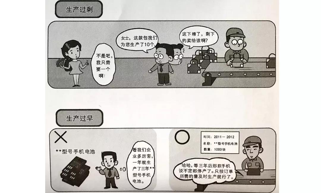 生產(chǎn)過剩包括生產(chǎn)過多和生產(chǎn)過早兩個(gè)方面。生產(chǎn)過多主要是由生產(chǎn)不均衡所造成的。出現(xiàn)了不均衡情況,本應(yīng)停線追本其原因, 以便及時(shí)發(fā)現(xiàn)問題,但過量生產(chǎn)有可能使原因無從查起。生產(chǎn)大量沒有賣出去的產(chǎn)品,不僅占用資金、生產(chǎn)空間和倉(cāng)儲(chǔ)空間,增加搬運(yùn)和庫(kù)存的浪費(fèi),而且還會(huì)掩蓋生產(chǎn)過程已經(jīng)同現(xiàn)的各種偏差、浪費(fèi)和不合理,白白丟掉了改善的突破口。如果生產(chǎn)過早,一年內(nèi)干完了三年的活,那么就等于產(chǎn)生了兩年時(shí)間的庫(kù)存。這種情況不能說明生產(chǎn)效率高,反而說明生產(chǎn)管理混亂、勞動(dòng)定額不合理和生產(chǎn)不均衡等。企業(yè)應(yīng)該遵循JIT生產(chǎn)的原則,只把需要的產(chǎn)品,在需要的時(shí)候,按需要的量生產(chǎn)出來即可。