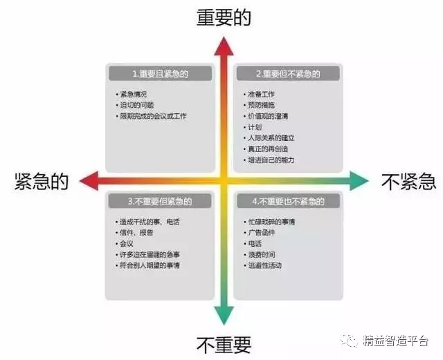 優(yōu)先順序=重要性*緊迫性,在進(jìn)行時(shí)間安排時(shí),應(yīng)權(quán)衡各種事情的優(yōu)先順序,要學(xué)會“彈鋼琴”。
