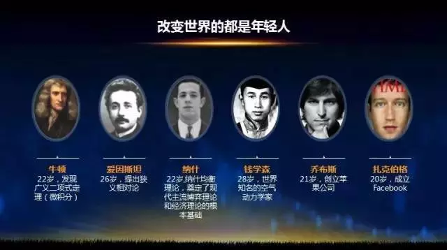 錢學森28歲時就已經(jīng)是世界知名的空氣動力學家,牛頓22歲就奠定了微積分的理論基礎;愛因斯坦提出相對論時僅28歲。
