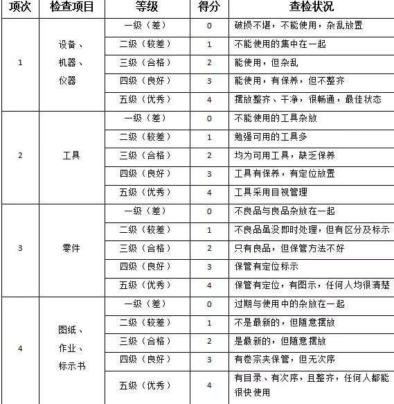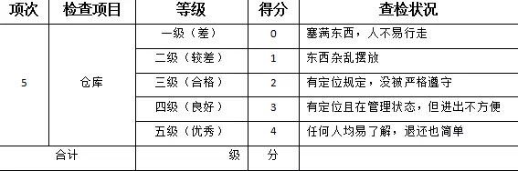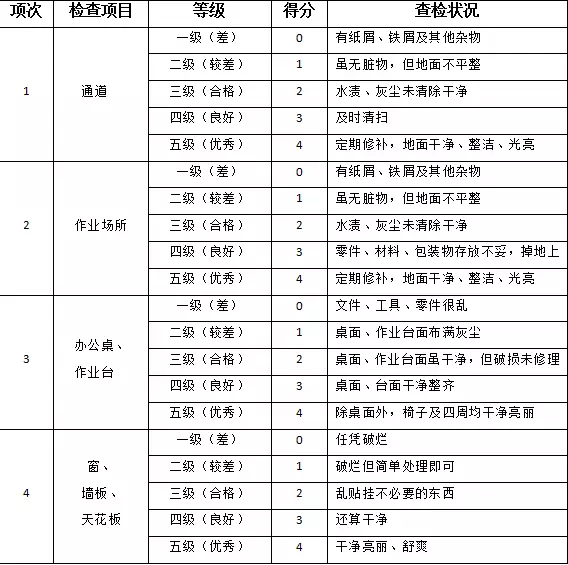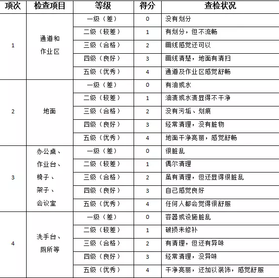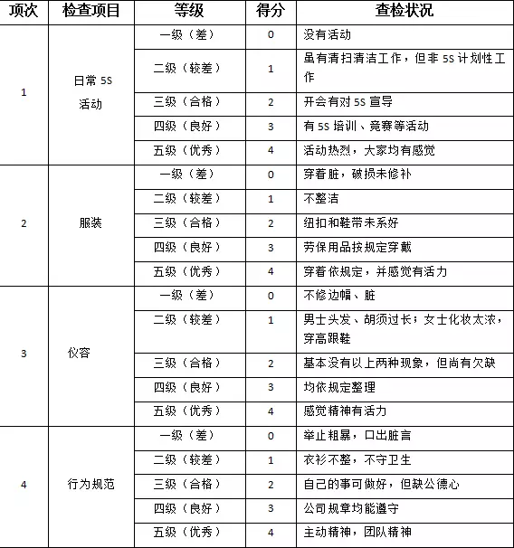 最后附給大家?guī)讖?S的檢查打分表,督促大家做好5S管理。