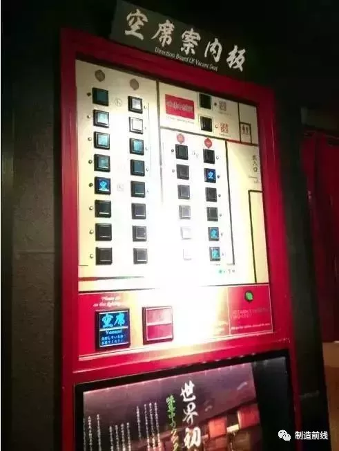 日本著名的一蘭拉面店,有一個(gè)叫做“空席案內(nèi)板”的自動(dòng)感應(yīng)系統(tǒng),顧客在門口就可以知道哪里有空座,避免了食客到店后四處找座位的苦惱。