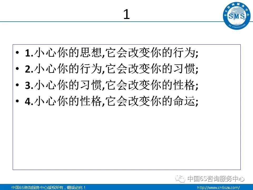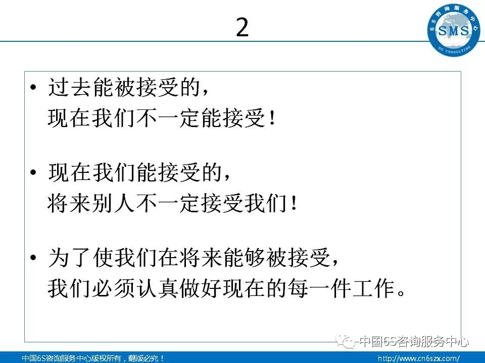 首頁 > 研究與洞見 > 方法論基礎(chǔ) 工廠企業(yè)6S現(xiàn)場(chǎng)管理圖解(32)頁 來源:華昊企管 發(fā)布時(shí)間:2018-05-14 --- THE END --- / 上一篇:您知道PDCA循環(huán)管理理念,什么是SDCA循環(huán)? 雙軌改善 看這里! 下一篇:稻盛和夫:人生最重要的就是“持續(xù)”,就是“持續(xù)做好一件事”