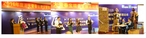 此次總結(jié)大會(huì)是對(duì)2016年公司在繼續(xù)深入普及推進(jìn)精益活動(dòng)各方面的工作總結(jié)與回顧,營(yíng)造出全員動(dòng)員、自我改善的活動(dòng)氛圍,將精益的追求卓越、改善無限的理念不斷與企業(yè)“戒欺”文化相融合,以工作環(huán)境、操作生產(chǎn)、設(shè)備管理及技術(shù)難點(diǎn)等多方面為著眼點(diǎn),將基礎(chǔ)面改善(5S&TPM)和難點(diǎn)攻關(guān)(員工改善提案、QC小組活動(dòng)及LSS項(xiàng)目)相結(jié)合,鼓勵(lì)大家不斷深入理解精益的理念,學(xué)習(xí)掌握精益的工具,積極參與到精益的改善中來。2016年通過各類精益活動(dòng),使各個(gè)生產(chǎn)現(xiàn)場(chǎng)井然有序,工藝、管理流程上的部分難題得以攻克;也充分調(diào)動(dòng)起員工在工作中提升自己、展現(xiàn)自我的熱情。正大青春寶人將自己對(duì)精益的感悟、對(duì)工作的熱愛、對(duì)公司未來的期望譜進(jìn)歌詞中,填入散文里,揉入說唱里,編進(jìn)小品里,為大家展示了工作中的汗水和歡樂。