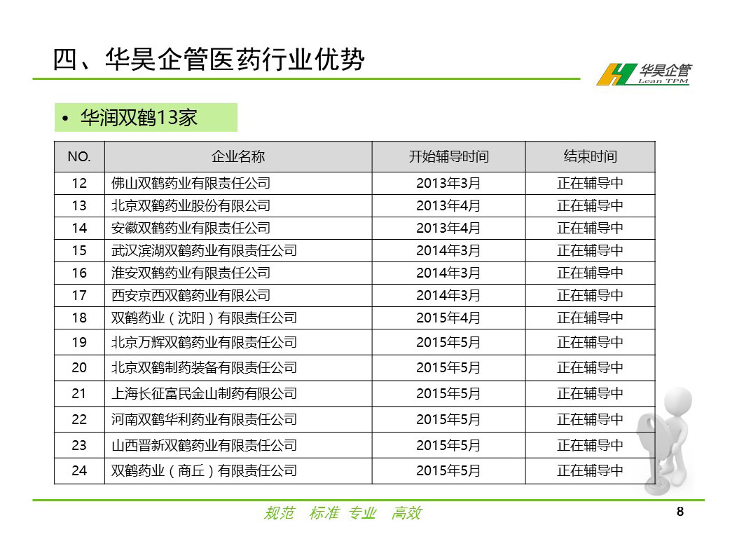 首頁 > 研究與洞見 > 方法論基礎(chǔ) 華昊企管--醫(yī)藥行業(yè)咨詢客戶介紹 來源:華昊企管 發(fā)布時(shí)間:2016-12-15 上一篇:智能自動化 下一篇:車間6S現(xiàn)場管理制度