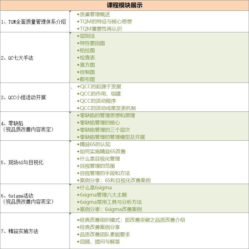 (注:咨詢大綱的原則,根據(jù)品質(zhì)改善的內(nèi)容而編排咨詢的模塊)