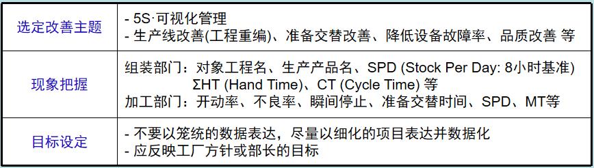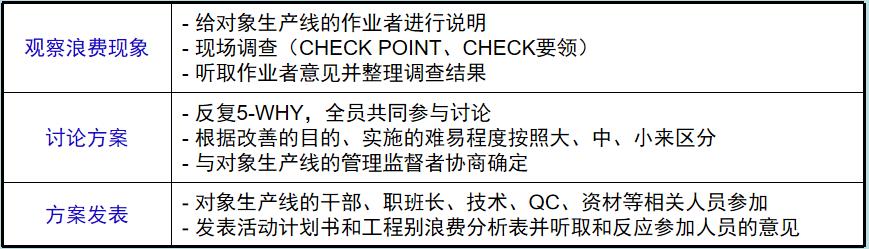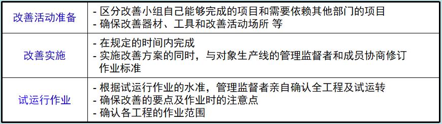 進行改善,以此培養(yǎng)改善帶頭人的改善能力。而且通過消除浪費等的成功的體驗提高管理
