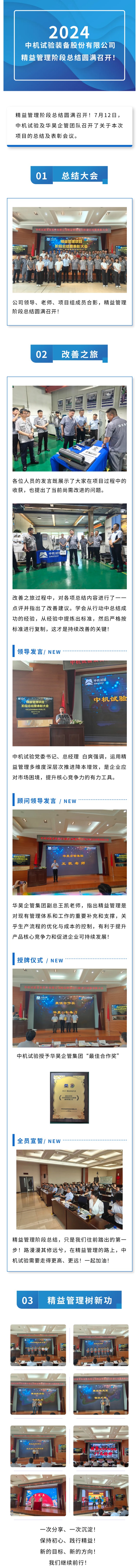 首頁 > 公司動態(tài) 快訊:中機試驗裝備股份有限公司 精益管理階段總結圓滿召開! 來源:華昊企管 發(fā)布時間:2024-07-17 上一篇:快訊:七二五所召開精益管理項目 第二階段總結發(fā)布會 下一篇:簽約:浙江寶豐特材股份有限公司 精益TPM管理項目!