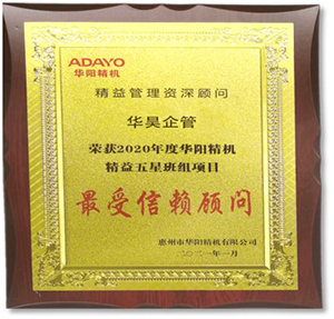 - 華陽精機(jī)授予:精益五星班組最受信賴顧問